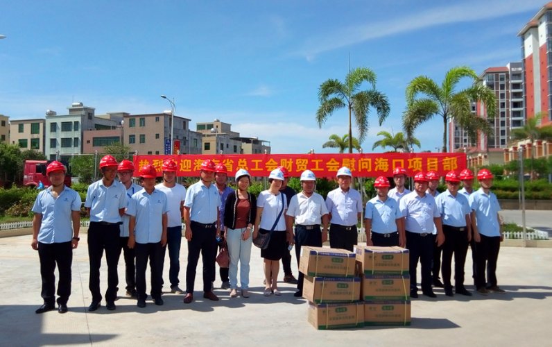 高溫籠罩下,6月21日,海南省總工會(huì)財(cái)貿(mào)工會(huì)主席呂亞平一行來到??谑行颅偲瑓^(qū)回遷商品房(一期)項(xiàng)目建設(shè)工地“送清涼”,中交海投工會(huì)主席唐世連,省總工會(huì)財(cái)貿(mào)工會(huì)常委、經(jīng)審主任歐陽水坤一同慰問。