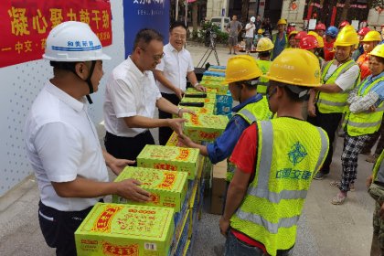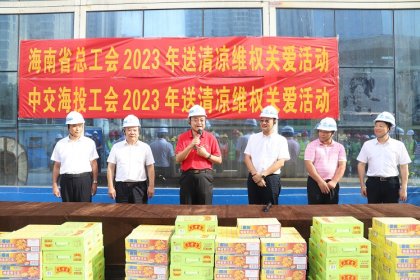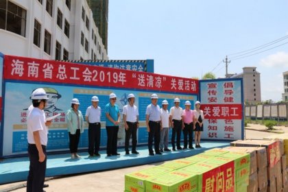 清涼度盛夏 安康伴我行——海南省總工會副主席何清到??谥薪粐H自貿(mào)中心項目開展送清涼慰問活動